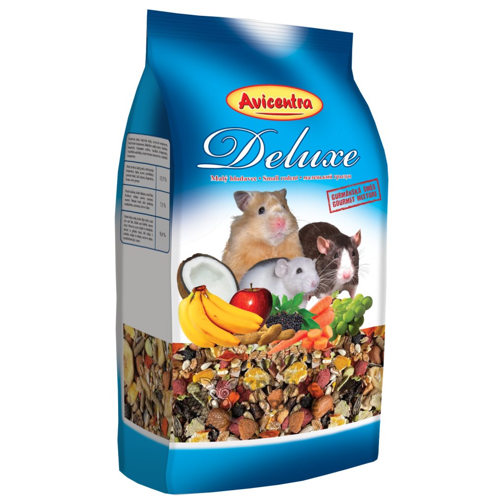 Avicentra Deluxe je prémiová, gurmánská kompletní směs pro malé hlodavce, vhodná pro křečky, myši, potkany, pískomily i další drobné druhy. Díky bohatému složení s ovocem, obilovinami, ořechy a přírodními surovinami poskytuje vyváženou denní výživu a skvělou chutnost.