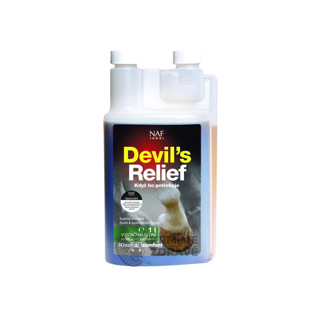 Devil’s Relief-čertův dráp tekutý je kombinací bylinných výtažků, tinktur a byliny čertův dráp – rostliny pocházející z Afriky. Devil’s Relief-čertův dráp tekutý poskytuje úlevu ztuhlým kloubům a při drobných poraněních, naražení, natažení, namožení nebo odřeninách. Přípravek lze krmit všem koním a poníkům s výjímkou březích klisen.