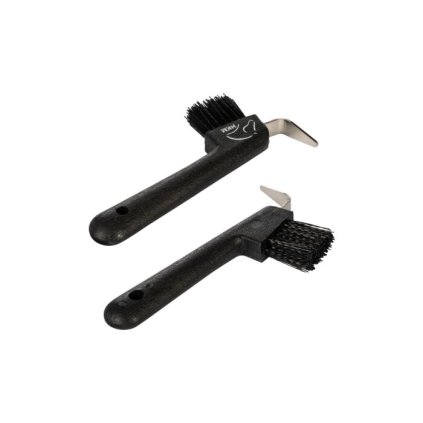 Háček na kopyta s kartáčkem, v rukojeti je díra na protažení provázku na zavěšení.