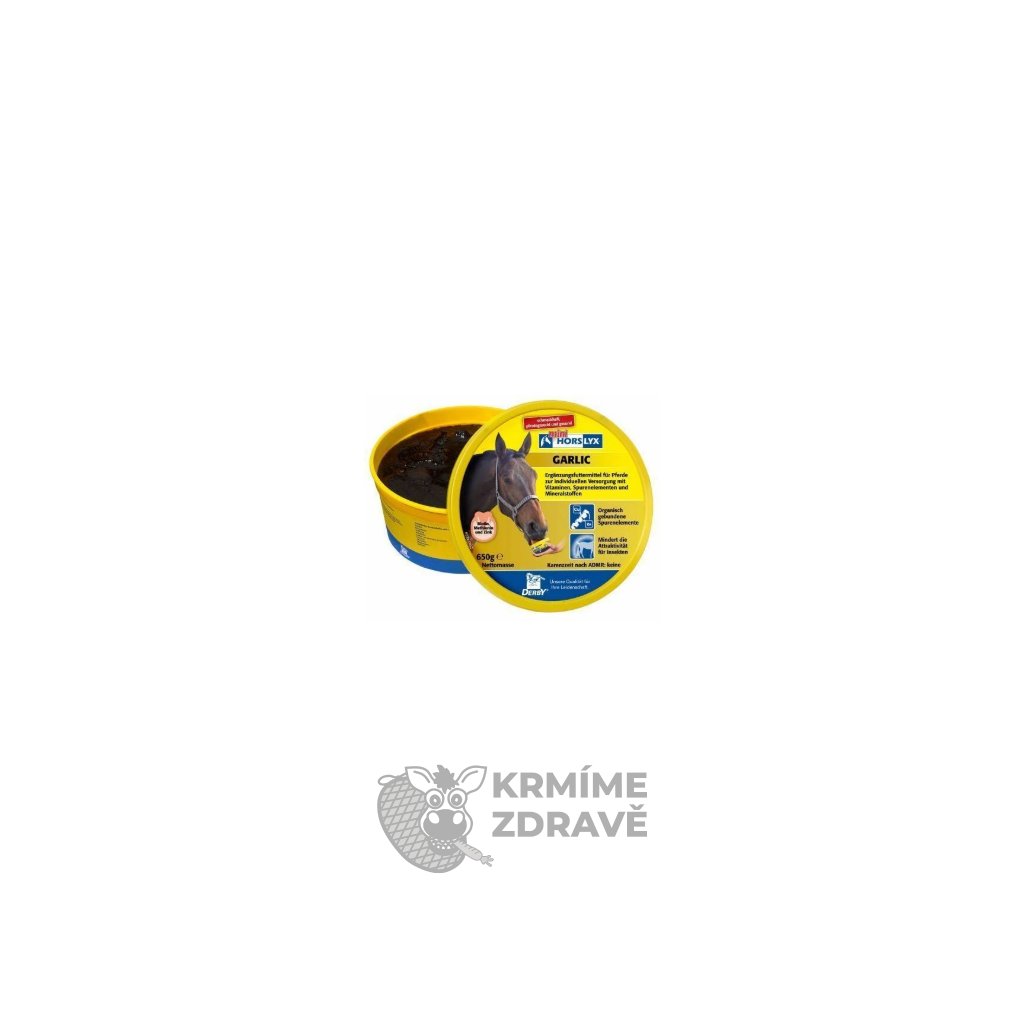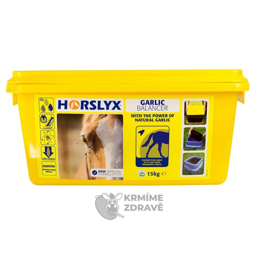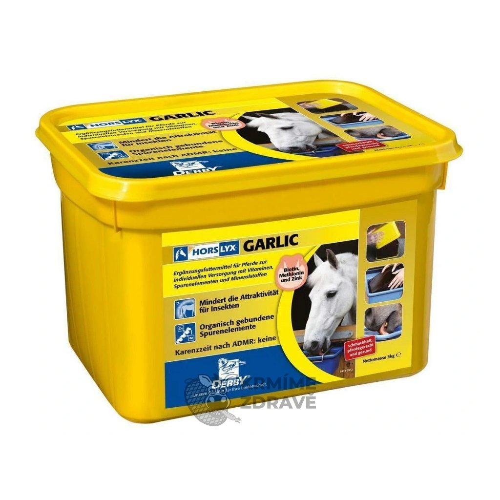 HORSLYX Garlic je velmi chutný, povětrnostně odolný minerální liz s přírodním sušeným česnekem. Díky patentovanému výrobnímu procesu neobsahuje žádná chemická pojiva, konzervanty ani obilné plnidla. Podporuje zdraví a vitalitu koně, a zároveň pomáhá snížit obtěžování hmyzem díky přirozenému aroma česneku.