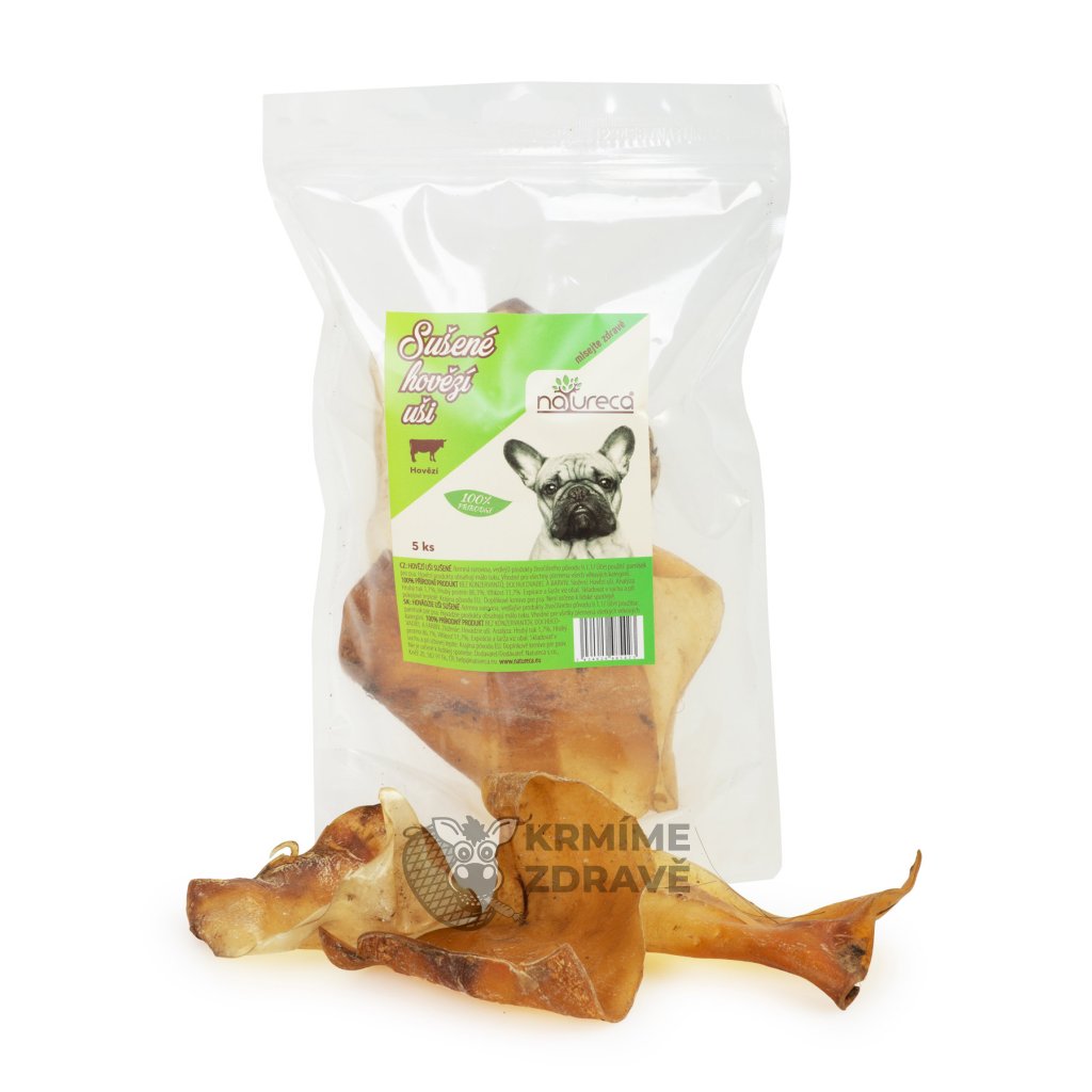 Hovězí uši sušené 5 ks jsou oblíbenou a zdravou pochoutkou pro psy všech velikostí. Tento 100% přírodní produkt bez konzervantů, barviv a dochucovadel je šetrně sušený, aby si uchoval maximum živin a přirozenou chuť. Díky nízkému obsahu tuku jsou hovězí uši vhodné i pro psy s dietou nebo s potřebou kontroly hmotnosti. Žvýkání posiluje žvýkací svaly, čistí zuby a napomáhá zdraví dásní. Díky tenčí konzistenci jsou ideální i pro štěňata a starší psy. Balení obsahuje 5 kusů v praktickém uzavíratelném sáčku.