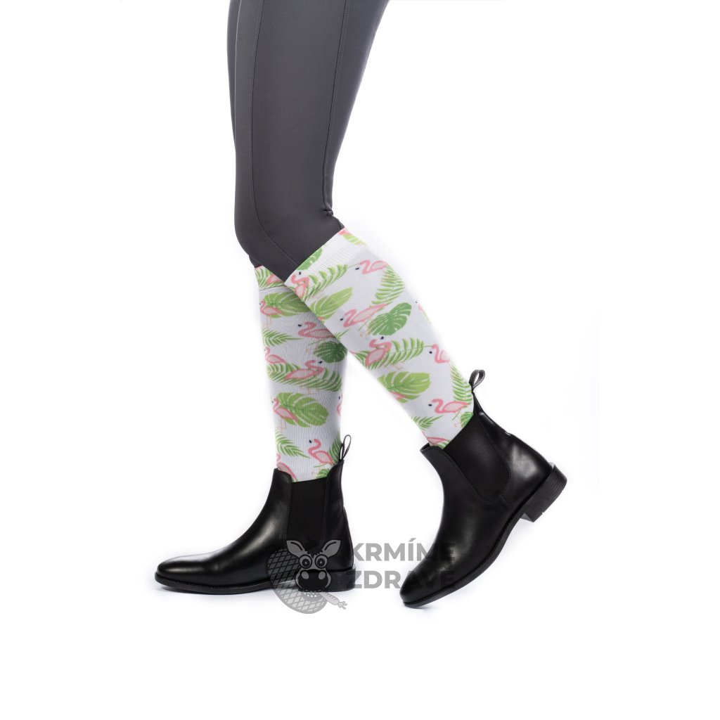 Stylové a zároveň funkční – přesně takové jsou jezdecké podkolenky Arizona Flamingo. Díky lehkému a prodyšnému materiálu se hodí především do teplých dnů, kdy zajistí vašim nohám pohodlí i při delším ježdění. Originální potisk s plameňáky a monsterami přinese do vašeho jezdeckého šatníku zábavu a svěžest. Tyto podkolenky jsou nejen praktickým, ale i módním doplňkem, který ocení každý jezdec.