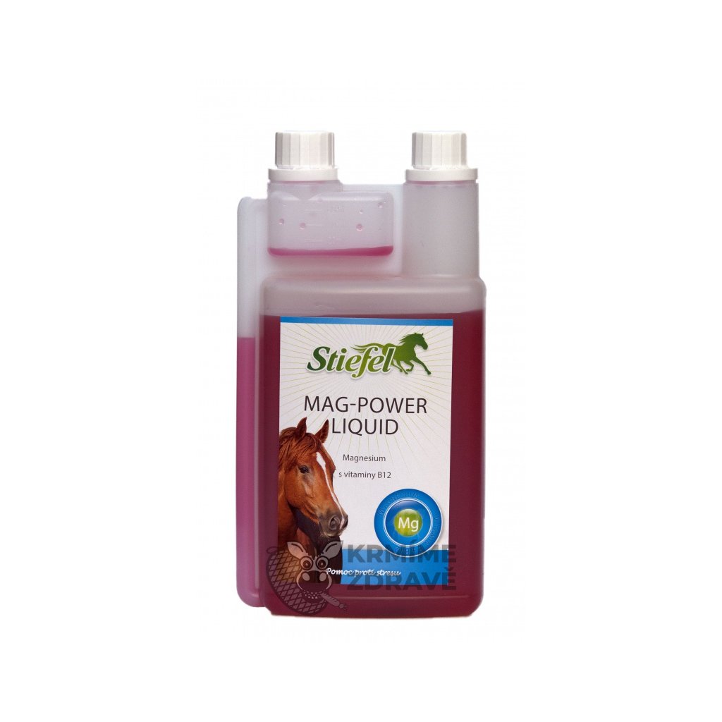 Stiefel Mag Power liquid s hořčíkem, tryptofanem, vitamínem B12 a zinkem, účinný proti stresu. Magnesium a vitamín B12 působí pozitivně na stresované a nervózní koně.