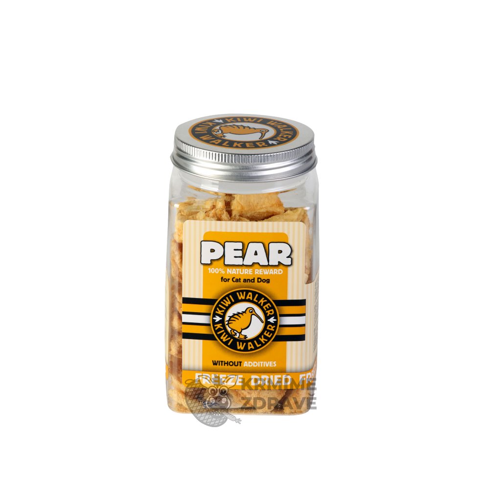 Dopřejte svému mazlíčkovi zdravou a chutnou odměnu – mrazem sušené hrušky. Díky šetrnému procesu lyofilizace si zachovávají maximum vitamínů, minerálů i přirozené chuti. Hrušky jsou 100% přírodní, bez umělých přísad a konzervantů, a proto jsou ideální volbou pro všechny psy a kočky, kteří si zaslouží jen to nejlepší. Skvěle se hodí pro zdravé odměňování při výcviku i jako zpestření běžného jídelníčku.
