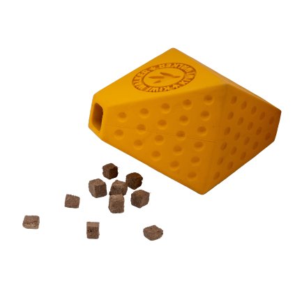 Plnící hračka pro psy v oranžové barvě. Odolná gumová koule s otvory na pamlsky, která se nepředvídatelně odráží a zabaví vašeho psa na dlouhou dobu.