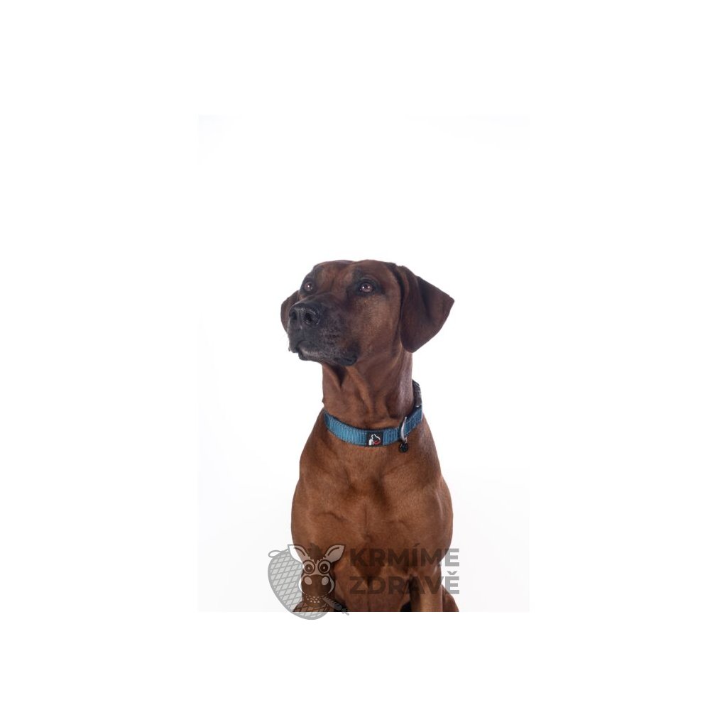 Psí obojek Anam Cara Petrolejový kombinuje moderní design s vysokou funkčností. Je vyroben z odolného a zároveň jemného nylonu, který je podložen měkkým Softoprenem pro maximální pohodlí při nošení. Reflexní švy zajišťují lepší viditelnost a bezpečnost psa za zhoršených světelných podmínek. Obojek je plynule nastavitelný, vybavený kvalitní kovovou sponou a pevným D-kroužkem pro snadné připnutí vodítka. Dostupný ve třech velikostech a šířkách, aby perfektně padl malým i velkým plemenům.