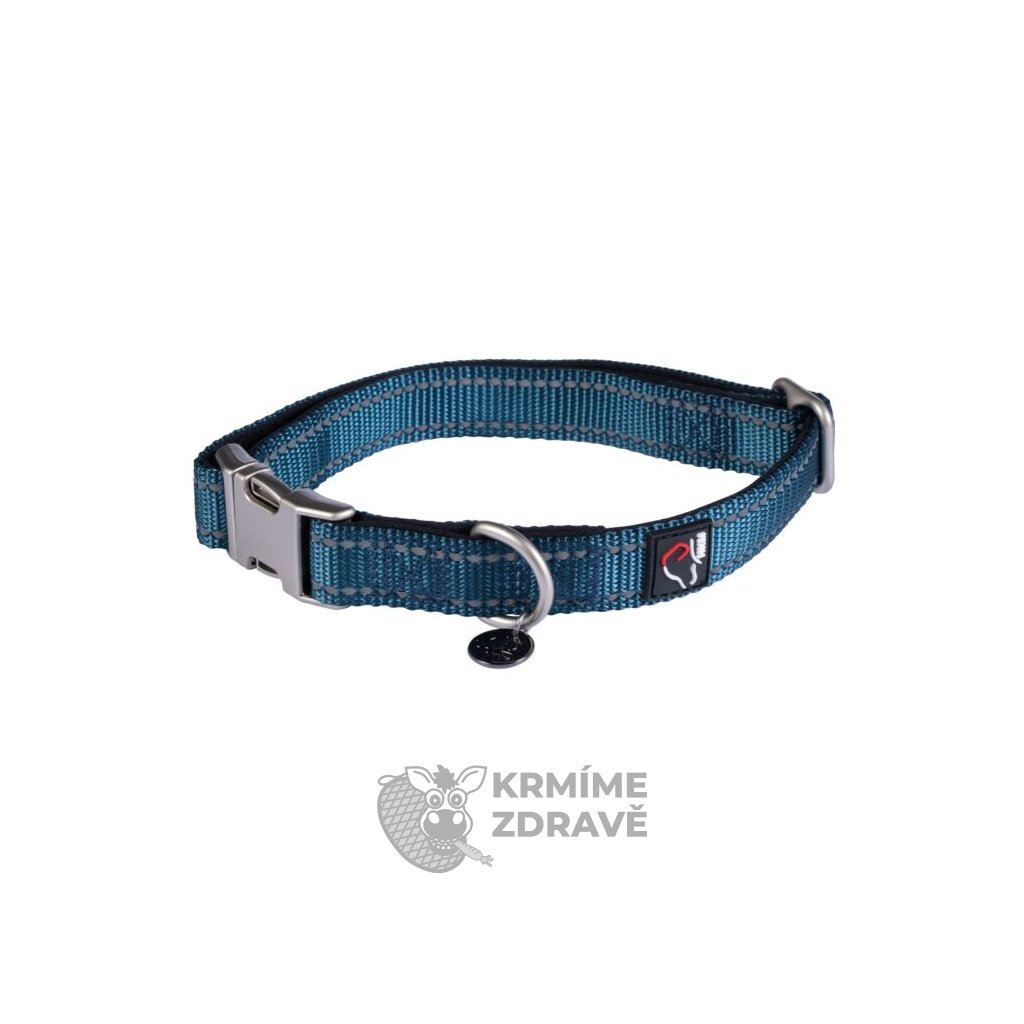 Stylový psí obojek Anam Cara v tmavě modré barvě, reflexními prvky a měkkým podložením pro pohodlné a bezpečné nošení.
