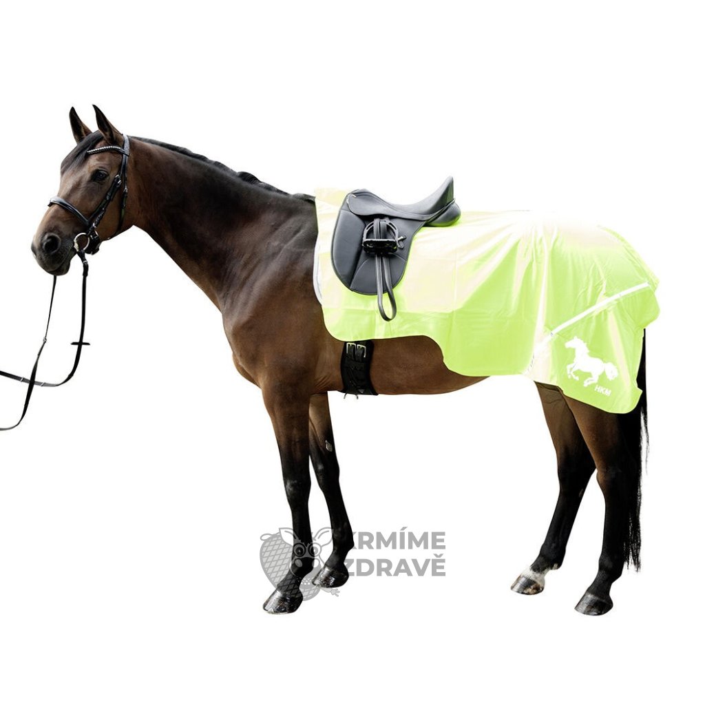 Reflexní bederka je praktickým doplňkem pro bezpečné vyjížďky v šeru, dešti i za tmy. Vyrobena z větruodolného materiálu, který chrání hřbet koně před prochladnutím. Díky reflexním pruhům a detailům zajišťuje výbornou viditelnost i za zhoršených světelných podmínek. Bederka má vykrojení pro sedlo a zapínání na suchý zip, které umožňuje rychlé a snadné připevnění. Součástí je i ocasní popruh pro stabilní uchycení. Ideální volba pro tréninky a vyjížďky v každém počasí.