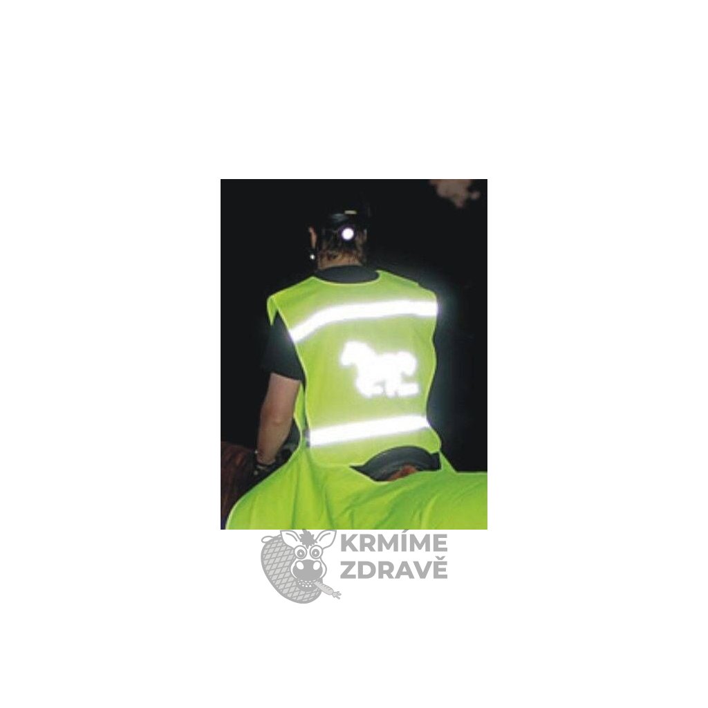 Reflexní jezdecká vesta pro děti z lehkého, větruodolného materiálu zajišťuje viditelnost a bezpečí při jízdě za šera či tmy.