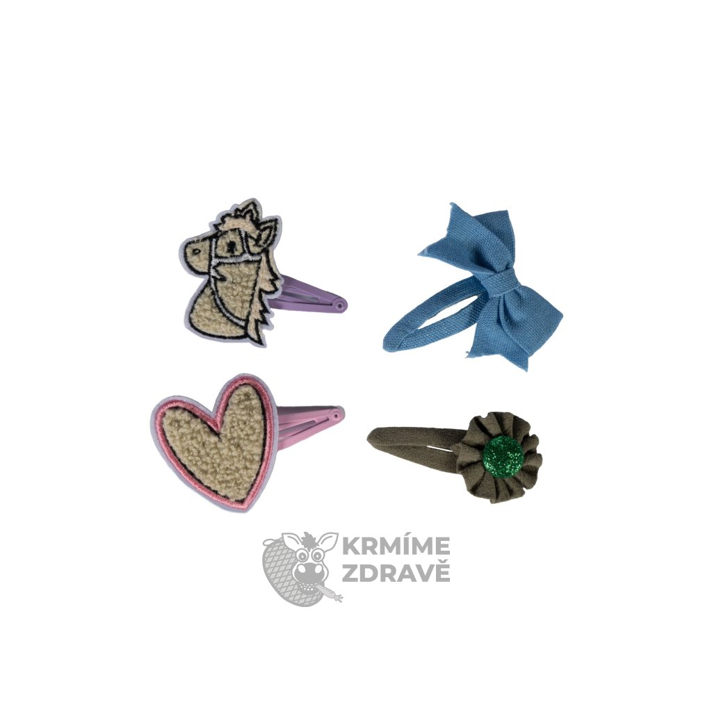 Set sponek do vlasů Hobby Horse je ideálním doplňkem pro všechny malé jezdkyně a fanoušky Hobby Horsingu. Balení obsahuje čtyři barevné sponky, z nichž jedna je skutečným poutačem – zdobená motivem Hobby Horse a hebkými detaily z teddy kožíšku. Sponky nejen krásně ozdobí účes, ale také podtrhnou lásku k oblíbené hře na koně. Jsou lehké, snadno se používají a stanou se oblíbeným módním doplňkem každé malé milovnice koní.