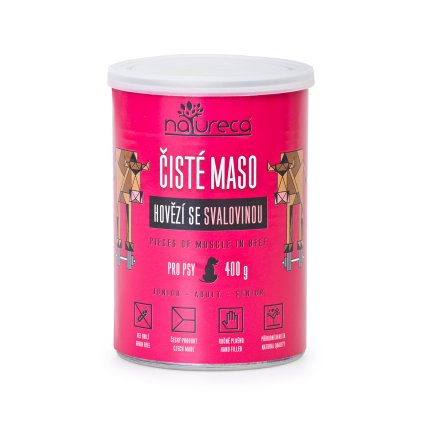 Hovězí se svalovinou je 100% masová konzerva s ručně vkládanými kusy svaloviny. Bez obilovin, sóji a chemie. Vhodná pro psy všech plemen a věkových kategorií.