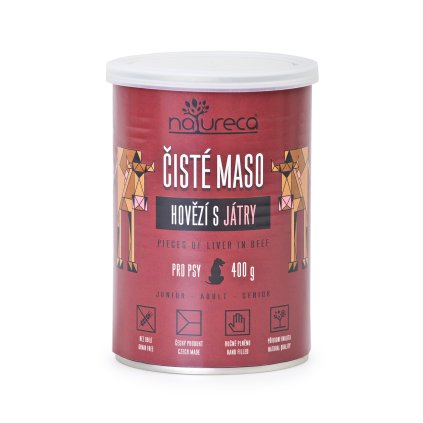 Hovězí s játry je 100% masová konzerva s ručně vloženými kusy jater. Přírodní krmivo bez obilovin, sóji a konzervantů. Vhodné pro psy všech plemen a věkových kategorií.
